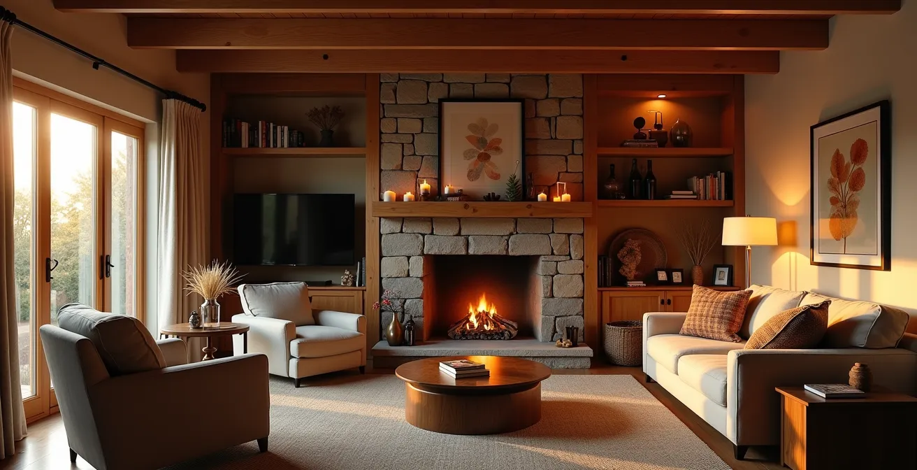 - Créer un point focal fort et chaleureux avec un mur d’accent texturé (bois, pierre) ou un foyer, qui deviendra le cœur de la pièce.